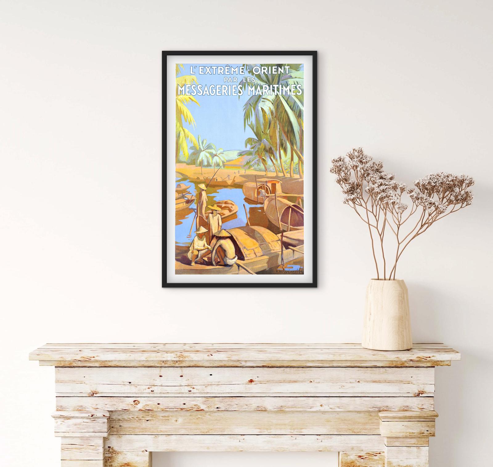 Affiche extrême Orient par les messageries maritimes CGT